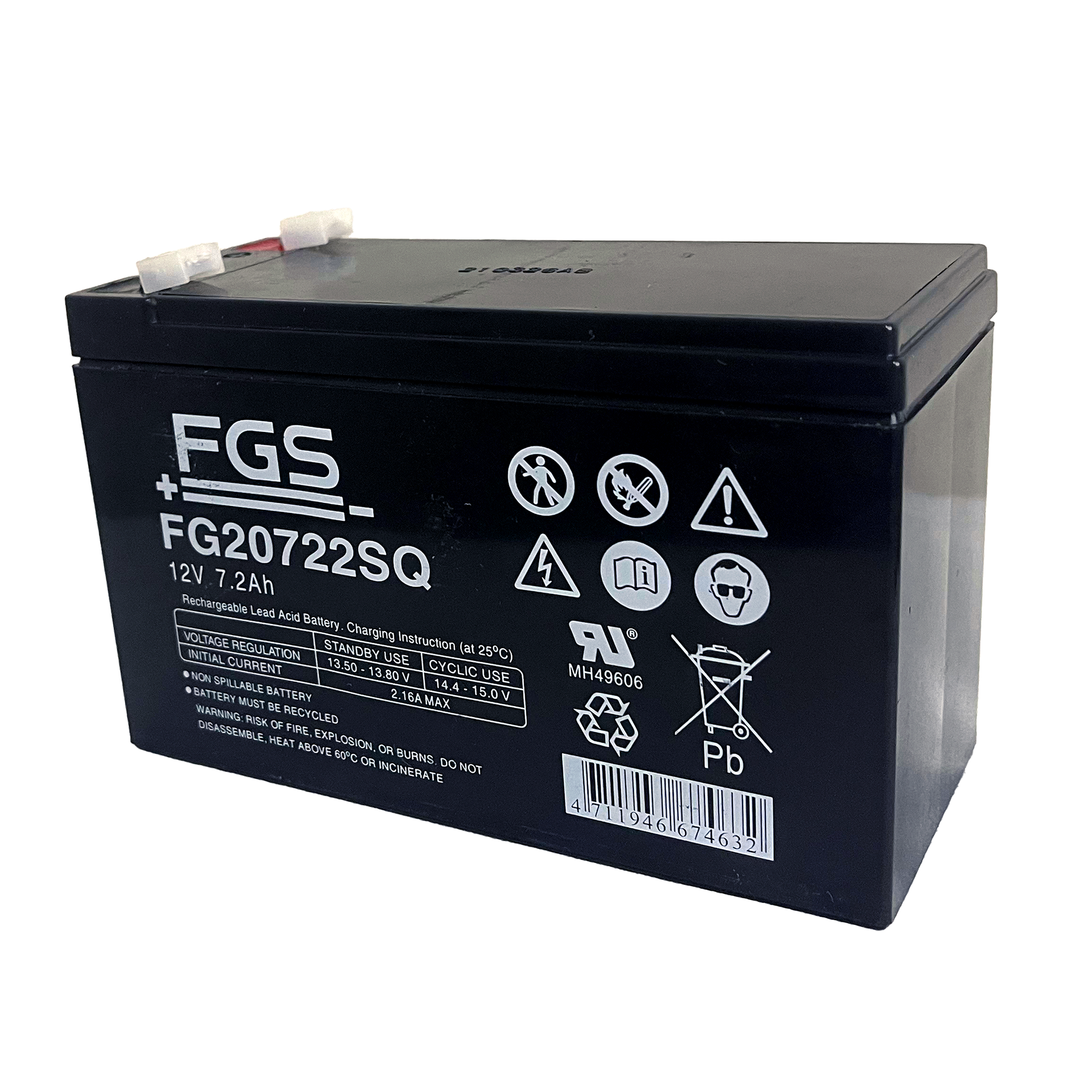 Modelo: FG20722SQ Alimentação: 12V Capacidade: 7.2ah (amperes hora) Voltagem de regulação: 13.50 - 13.80V (standby use) Voltagem de regulação: 14.4 - 15.0V (ciclic use) Corrente inicial: 2.16A MAX