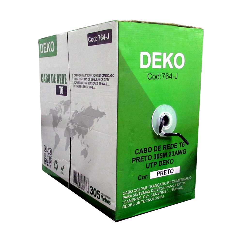 Marca: Deko Modelo: Deko Cat6 T6 Tipo de cabo de rede: Par trançado UTP Unidade de venda: Bobina Cor: Preto Comprimento: 305 metros